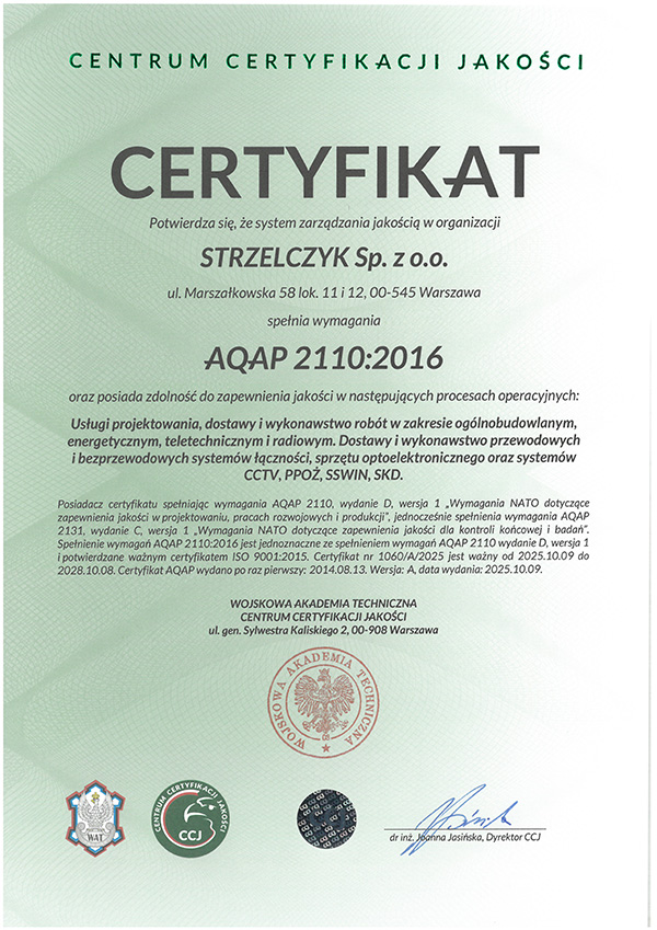 - Certyfikat AQAP 2110:2016 nr cert. 1060/A/2022