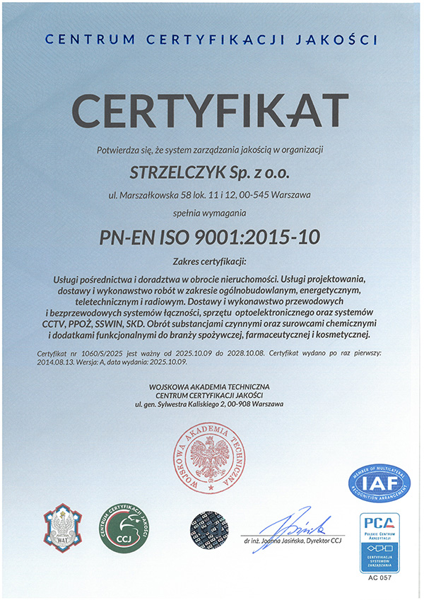 - Certyfikat ISO 9001:2015 nr cert. 1060/S/2022